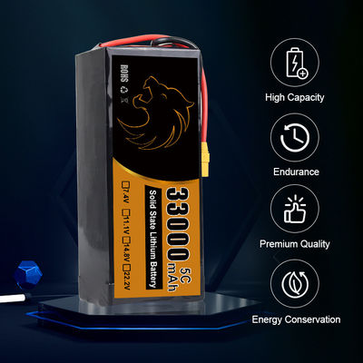 FPV Solid State Drone Battery mają pojemność 33000mAh, co czyni je idealnymi do długodystansowych lotów i dłuższych czasów lotu.zmniejszenie konieczności ciągłej wymiany baterii podczas zdjęć lub misji.